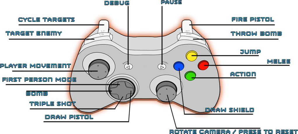 I’ve included a download link for a zipped copy of the game below! It was playtested using a USB cable to connect either an Xbox One or PS4 controller to a PC. Unfortunately Mouse & Keyboard Support was never developed during the project.