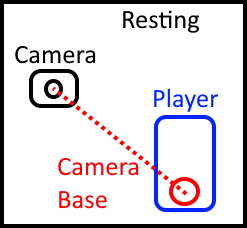 When the player moves, the camera stays focused on the camera base.