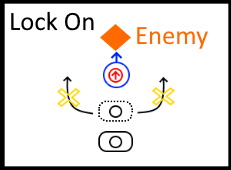 - While in this locked on state, some of the player’s buttons function differently. For example: pressing the gun button will allow the player to automatically fire directly at the enemy’s center mass without the need for manual aiming.