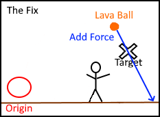 This new force works like a follow through, carrying the lava ball through its target position and making certain it reaches the ground regardless of its target position’s height.