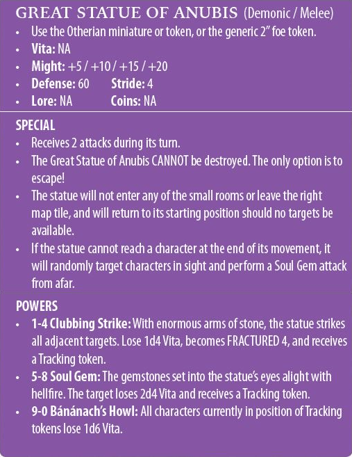 Below, I’ve included a sample of an encounter set up I created for The Forsaken Temple, featuring two unique creatures and a battle map I designed. This is the final battle before meeting the Affliction featured in this story and was designed to wear down the characters. This was done in part because the final battle actually presents the characters with the option of escaping rather than defeating Ba’na’nach. With a separate ending (and consequence for the next story!) depending on if they win, flee, or lose.